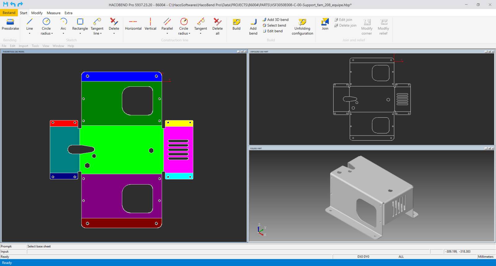 Disponible en version 2D et 3D, HACOBEND Pro s’adapte aux besoins variés des opérateurs. La version 3D propose des outils avancés de conception paramétrique et intègre une solution de CAO 3D complète. Elle permet notamment la détection automatique des lignes de pliage ainsi que la gestion de pliages complexes, garantissant une programmation rapide et précise, même pour les pièces les plus techniques.